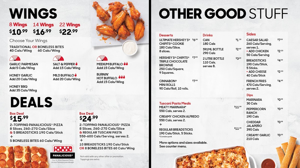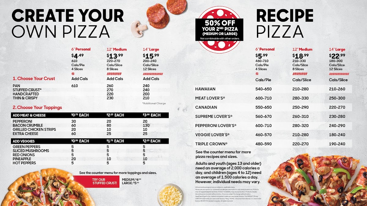 Pizza Hut stands out as a go-to spot for pizza lovers craving a blend of classic flavors and innovative sides. Their menu features an enticing selection of handcrafted pizzas, including crowd favorites like the Cheese Lovers and Veggie Lover, with perfectly crisp crusts and rich, generous toppings. Beyond pizza, the traditional wings shine with flavorful sauces—Sweet N’ Spicy, Spicy Garlic, and Honey Garlic—each offering a distinct blend of heat and sweetness. Sides complement the meal perfectly, such as the crispy Large Breadsticks and the bold, new Nashville Hot Waffle Fries for those seeking extra zest.